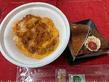 かつやの丼もの、パティスリーフレールのケーキをみんなで食べました♥